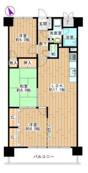 | バルコニー面積 | 9.6㎡ | バルコニー向き | 南 |