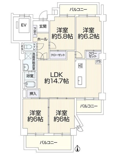 | 間取り | 3LDK | 間取り向き | |
