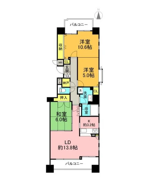 | バルコニー面積 | 13.66㎡ | バルコニー向き | 南 |