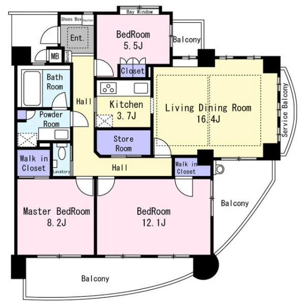 | 間取り | 3LDK | 間取り向き | (角部屋) |