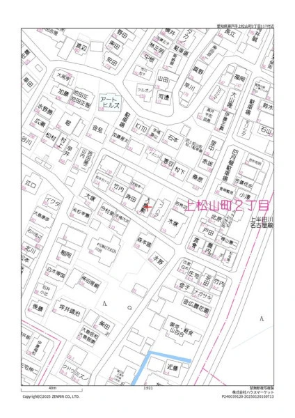 ※地図上の「対象地」は「愛知県瀬戸市上松山町2丁目 」付近を示しています。実際の場所ではない場合がございます。詳しくはお問い合わせください。