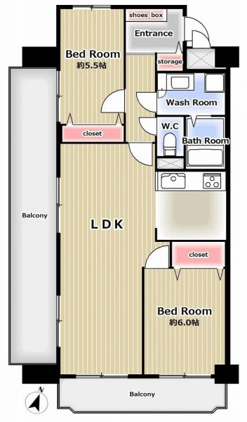 | 間取り | 2LDK | 間取り向き | (角部屋) |