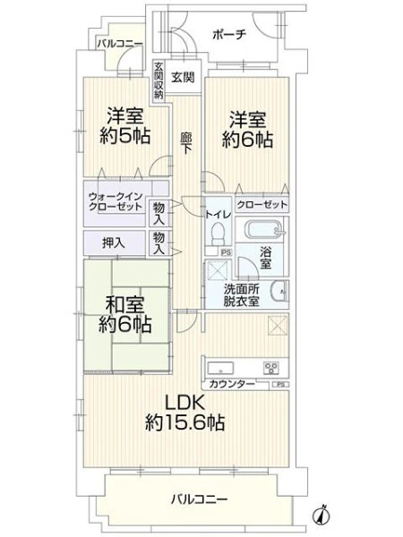 | 間取り | 3LDK | 間取り向き | (角部屋) |