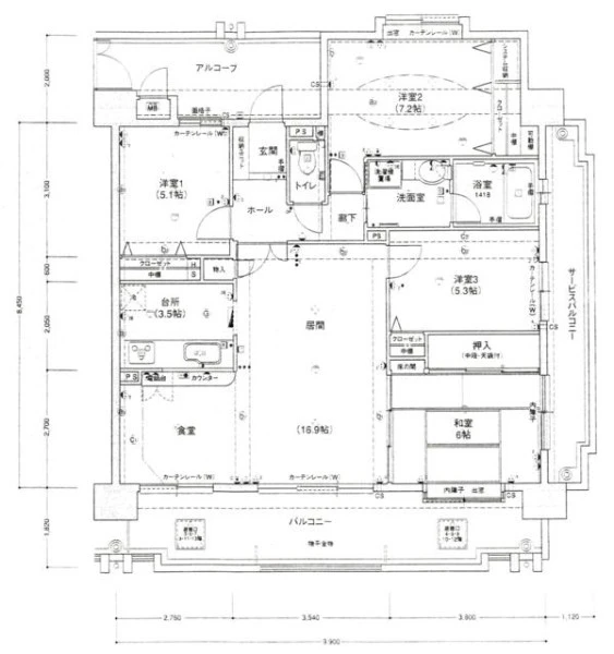 | バルコニー面積 | 26.35㎡ | バルコニー向き | 南東 |