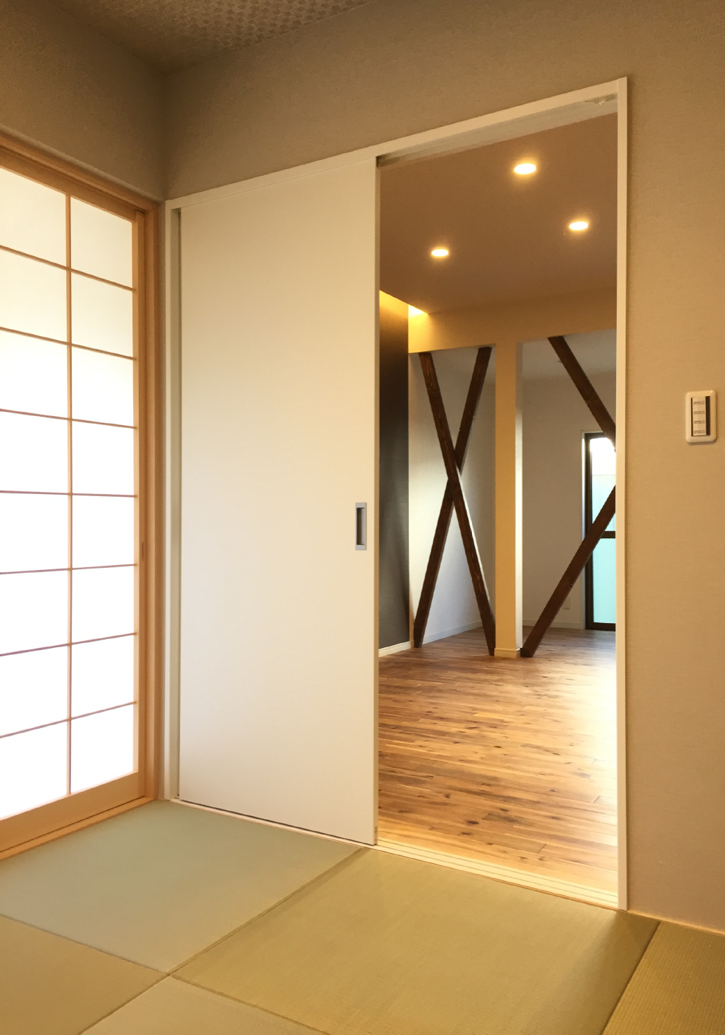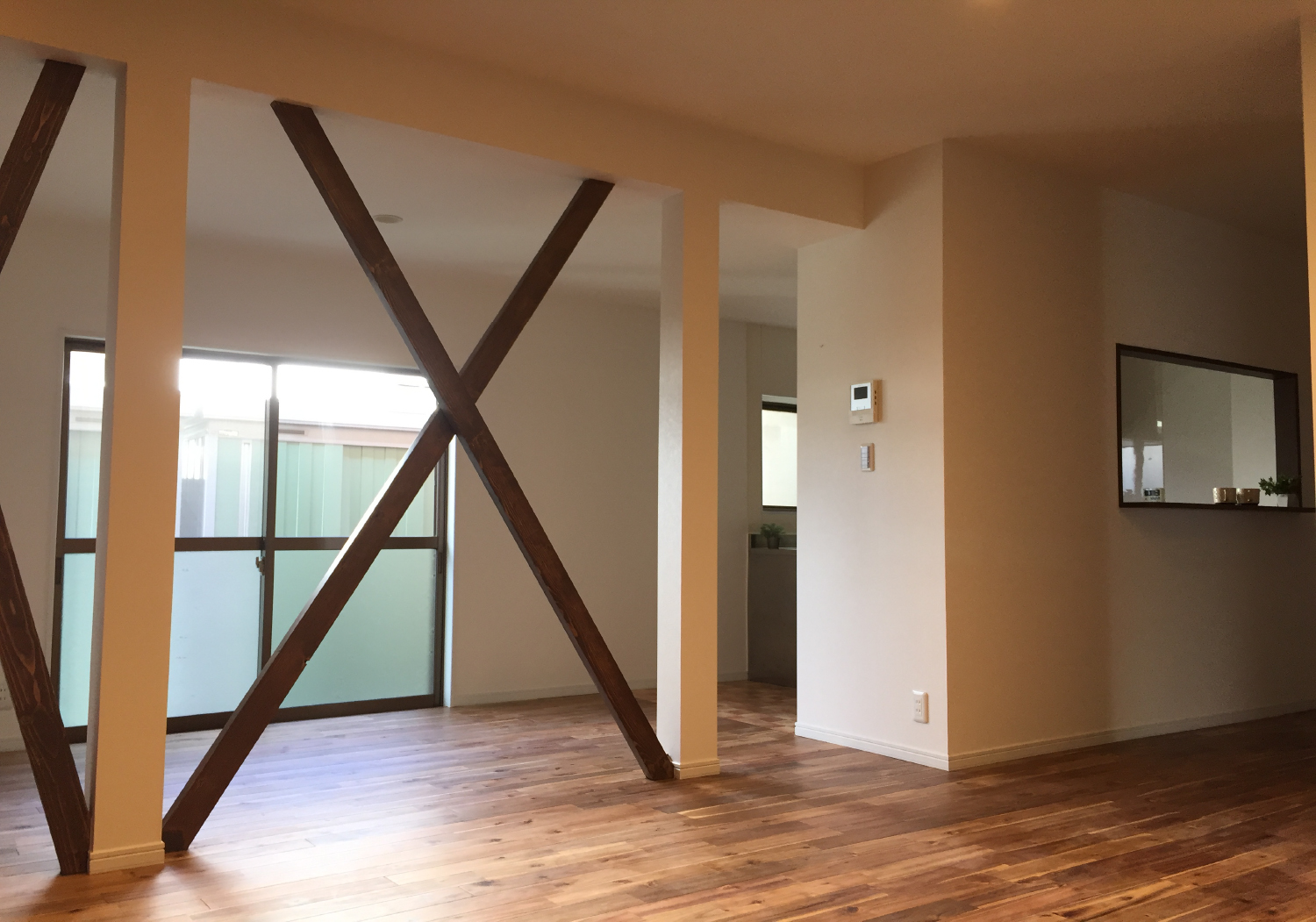 耐震補強工事、コンロ・トイレ交換、天井・壁クロス貼替、畳交換、LDK床 無垢フローリング貼、建具交換、クリーニング